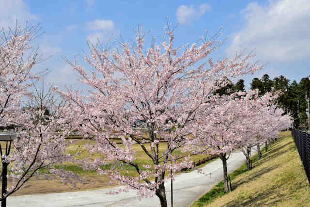 茨城空港第2駐車場の南側及び西側に桜が植えられている。